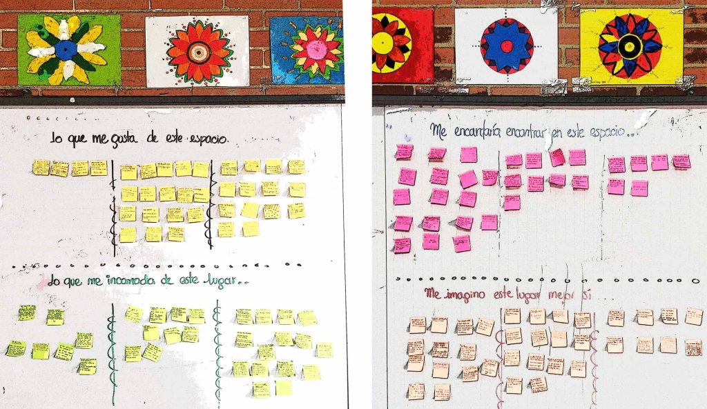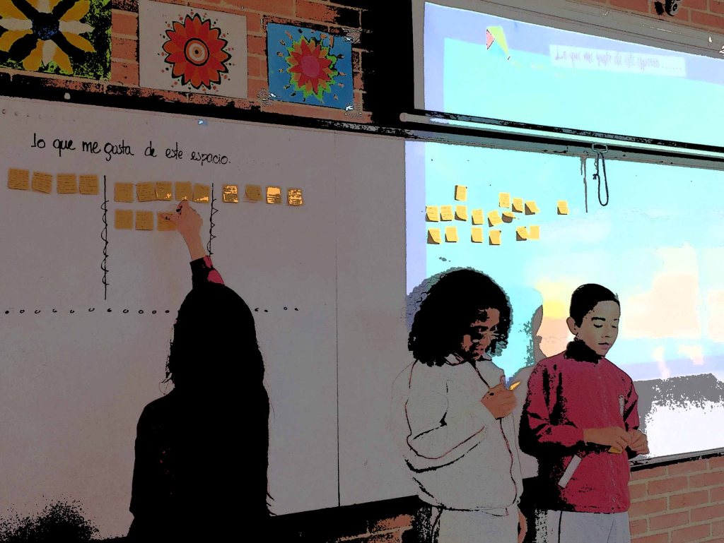 Los estudiantes escribieron en papelitos sus apreciaciones; una vez terminaban, los pegaban en el espacio proyectado en el tablero para después leer en voz alta y entre todos, agrupar por afinidad.