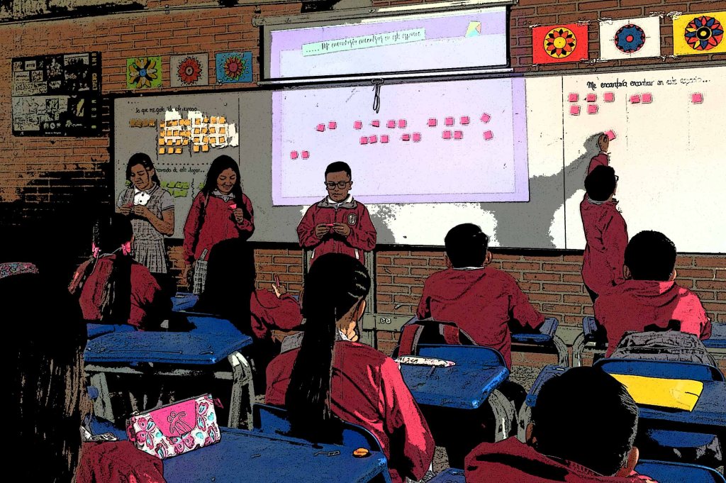 Y en ese sentido, las cosas no han cambiado mucho: la proyección de imágenes digitales o la escritura con tiza o marcador en el tablero, no son una ruptura suficiente para que los roles de cada uno de los participantes en el espacio educativo, puedan dar cuenta de una transformación significativa, de acuerdo con las condiciones tan cambiantes de nuestras sociedades de hoy.