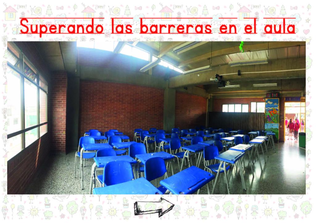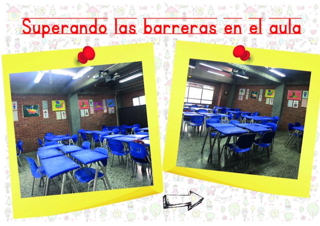 Al ingresar al salón de clase me encuentro sillas y mesas azules que están dispuestas en filas, de cinco en cinco hasta completar 40. En la clase de Eduación Artística se ha propuesto trabajar desde el aprendizaje basado en retos para incentivar con el trabajo colaborativo y la gamificación, el desarrollo del pensamiento creativo y la resolucuón de problemas en los estudiantes que pertenecen al ciclo 3 (Grado 6º y 7º). Aunque en este año se adelantaron algunas acciones como ubicarlos por grupos de 5 integrantes y comenzar a dar cierta identidad la salón, al preguntar sobre cómo ven y cómo se sienten en el espacio de clases, los estudiantes dejan muchos aportes para la reflexión sobre los espacios educativos del colegio, especialmente, su salón para la clase de Artística, un espacio multifuncional.
